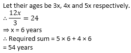 Q4. The ratio of the ages of A, B and C is 3 : 4 : 5. If the average of their ages is 24 years then what is the sum of ages of B and C?