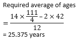 Q7. The average age of a group of 14 person is 27 years and 9 months. Two persons, each 42 years old, left the group. What will be the average age of the remaining persons in the group?
