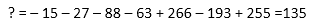 Q14. -15 -27 -88 -63 +266 -193 +255 =?