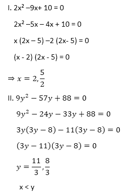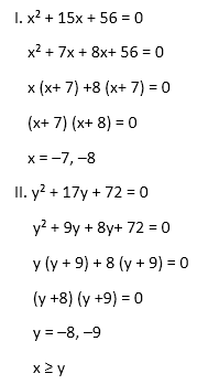 Directions (11-15): In the following questions two equations numbered (I) and (II) are given. You have to solve both equations and give answer