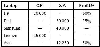 Directions (6-10): In the following table C.P., S.P. and Profit% of Laptop is given. Read the following questions and answer the given questions