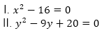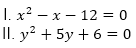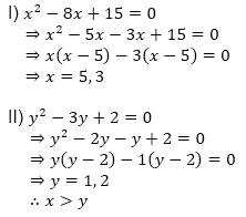Directions (11-15): In the following questions two equations numbered I and II are given. You have to solve both the equations.