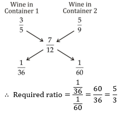 Q7. The ratio of water and wine in two different containers is 2 : 3 and 4 : 5 respectively. In what ratio we are required to mix the mixture of two containers in order to get the new mixture in which the ratio of wine and water be 7 : 5 ?