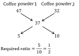 Q8. In what ratio should two qualities of coffee powder having the rates of Rs. 47 per kg and Rs. 32 per kg be mixed in order to get a mixture that would have a rate of Rs. 37 per kg ?