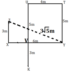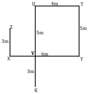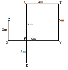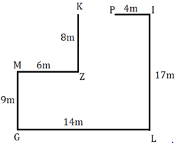 Aman starts his journey from point K, walks 8m towards South to reached at point Z, then takes a right turn and walks for 6m to reach point M. From point M he takes a left turn and walks for 9m to reach at point G, From point G he takes a left turn and walks 14m to reach at point L, then takes a left turn again and walks 17m to reach point I. From point I, He walks 4m in west direction and reached point P.