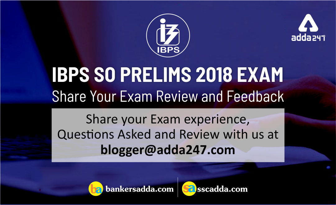 The IBPS SO Prelims 2018 Shift-1 (30th Dec 2018) exam is over now. So, it’s time to share your experience of the exam as it will help others know bits and parts of the exam. Share your IBPS SO Prelims Bank PO 2018 exam review and know where you stand among thousands of aspirants who appeared for the exam. And if you remember any questions or the type, share it with us.