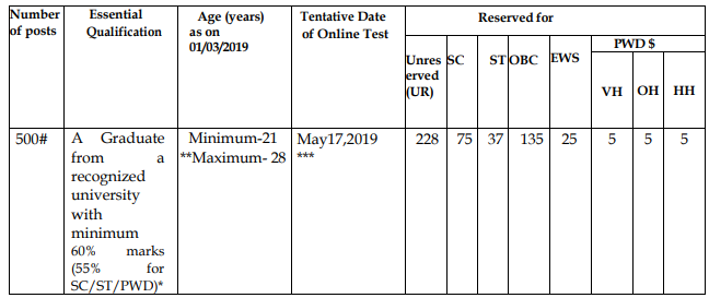 IDBI Bank has released the notification of Recruitment of Assistant Manager 2019. The Total number of posts is 500. IDBI Bank (51% shares held by Life Insurance Corporation of India) invites online applications from eligible Indian citizens for the post of Assistant Manager. Candidates fulfilling required eligibility criteria may apply On-line through the link given in Bank’s website.