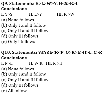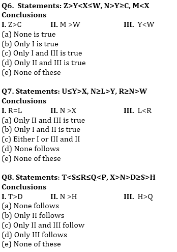 Directions (6-10): In each of the following questions assuming the given statements to be true, find which of the three conclusions I, II and III given below them, is/are definitely true and give your answer accordingly.