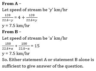 Q8. What will be speed of stream, if speed of boat in still water is 22.5 km/hr?