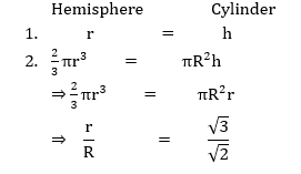 Q15. The respective heights and-volumes of a hemisphere and a right circular cylinder are equal then the ratio of their radii is