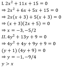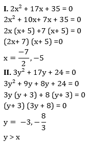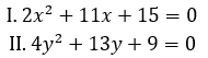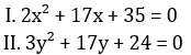 Directions (1-5): In each of these questions, two equations numbered I and II are given. You have to solve both the equation and give answer