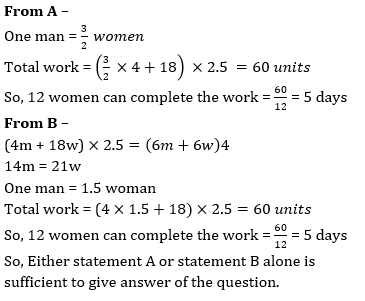 Q7. 4 men & 18 women can do a piece of work in 2.5 days, then in how many days 12 woman can complete the same piece of work?