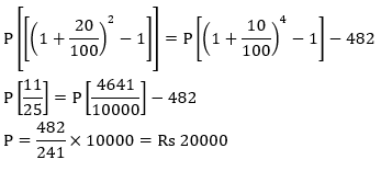 Q14. A sum of money lent at compound interest for 2 years at 20% per annum would fetch Rs. 482 more, if the interest was payable half yearly than if it was payable annually. The sum is :