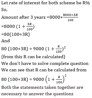 A. A sum of Rs 8000 is invested at simple interest for 3 years in scheme A which offers a certain rate of interest. Amount obtained from scheme A is equal to the amount obtained when Rs 9000 is invested in scheme B for 2 years at C.I.