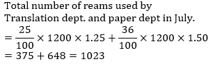 Q3. If number of reams used in July by Translation dept. increases by 25% as compared to previous month and number of reams used in July by Paper dept. increases by 50% as compared to previous month. Then find the total number of reams used by Translation dept. and paper dept. in July?