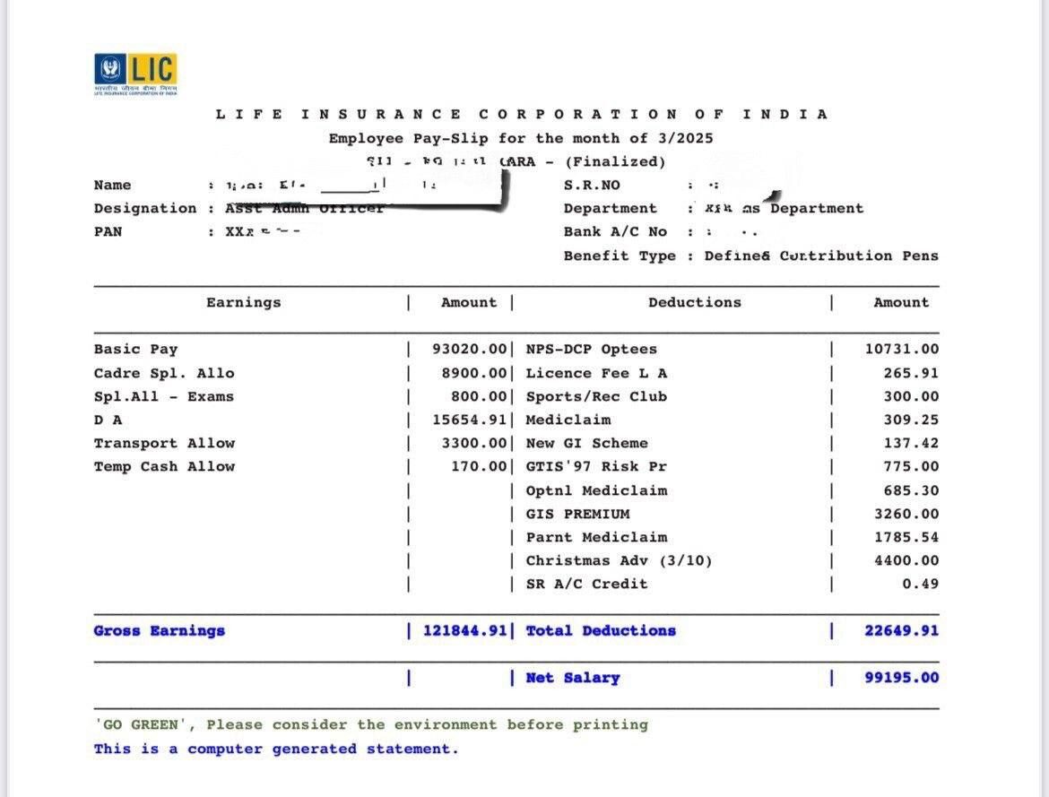 LIC Assistant Administrative Officer Salary 2025: Deductions
