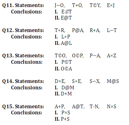 Directions (11-15): In the following questions, certain symbols are used with the following meanings: