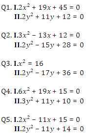 Directions (1-5): In these questions, two equations numbered I and II are given. You have solved both the equations and mark the appropriate option.