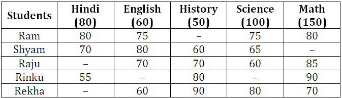 Q13. If Rekha obtained 10% less mark in Hindi than that of Shyam in the same subject, then find the average mark obtained by Rekha in all subjects(approximately)