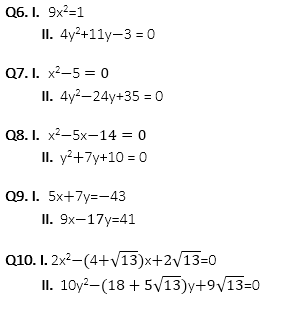 Directions (Q.6-10): In each of these questions, two equations (I) and (II) are given. You have to solve both the equations and give answer,