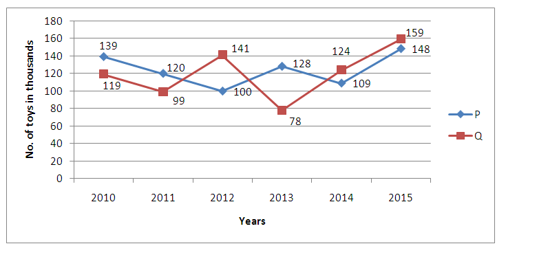 Q15. The manufacturing of toys costs Rs. 5 lacks per 10,000 toys. If company P sells 90% of its Products in 2014 at the rate of Rs. 80 Per piece, while remaining products wasted away, then find its profit % in 2014?