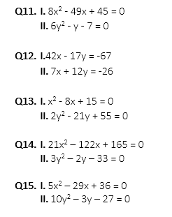 Directions (11-15): In each of these questions, two equations (I) and (II) are given. You have to solve both the equations and give answer-