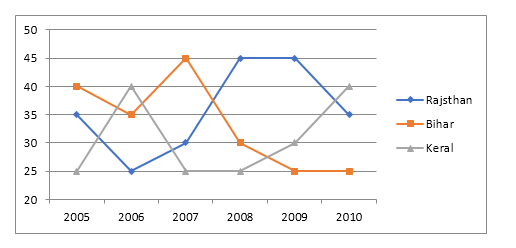 The following graph shows the percentage of number of girls born in three different states of India for the years 2005-2010