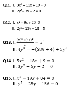 Directions (11-15): In these questions, two equations numbered I and II are given. You have to solve both the equations and give answer