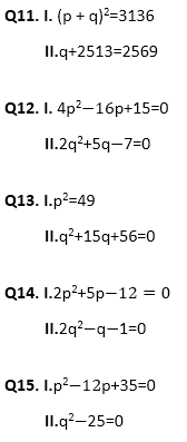 Directions (Q11-15): In each of these questions, two equations (I) and (II) are given. You have to solve both the equations and give answer
