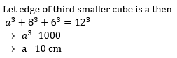 Q10. A metal cube of edge 12 cm is melted and formed into three smaller cubes. If the edges of two smaller cubes are 6 cm and 8 cm, then find the edge of the third smaller cube.