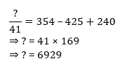 Q30. 17 × 25 – 240 +? ÷ 41 = 354