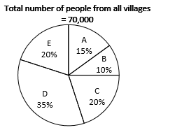 Total number of people in the 5 villages Comprisings Men, women and children is shown in pie chart