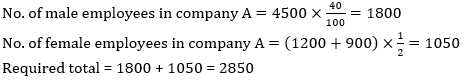 Q15. If there is another company A in which no. of male employees are 40% of the total employees in company M and female employees are half of the total employees in company X then find total employees in company A?