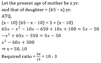 Q7. The sum of the ages of mother and daughter is 65 years. 10 years ago the product of their ages was 5 times the age of mother at that time. Then find the ratio of the present age of mother to the present age of daughter(age of mother is greater than 30 years).