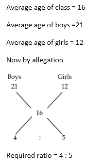 Q4. The average age of all the students of a class is 16 years. The average age of boys of the class is 21 years and that of the girls is 12 years. What is the ratio of the boys to the girls?