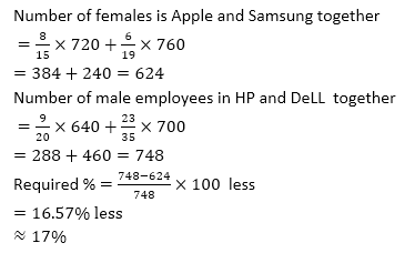 Q6. Number of females, employees in company Apple and Samsung together is approximately what percent more or less than the number of male employees in H.P and Dell.