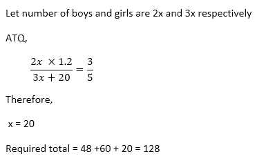 Q2. In a class the number of boys and number of girls are in the ratio of 2 : 3. If the number of boys is increased by 20% and number of girls is increased by 20 then the new ratio of the number of boys to that of girls is 3:5. What is the total strength after increase?