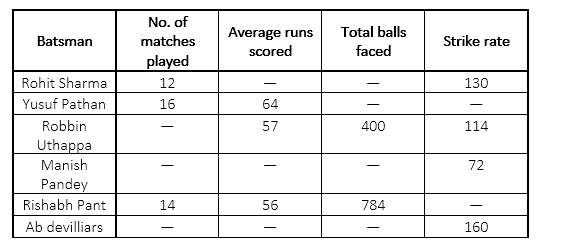 Directions (11-15): Study the following data related to the performance of 6 batsmen in IPL 2016 tournament.