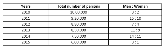 Directions (6-10): The following table shows the total number of persons died due to HIV virus in six different years from all over world and ratio of men to women over these six years. Study the table and answer the questions that follow.