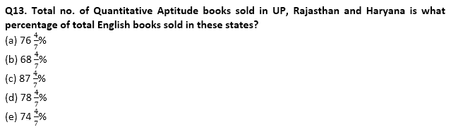 Q14. If cost price of one Quant book, one Reasoning book and one English book is Rs. 150, Rs. 120 and Rs. 100 respectively then total selling price of these three books in Rajasthan is what percent more or less than the total selling price of these three books in Haryana (Nearest integer)?