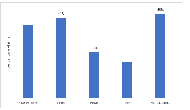 Directions (1-5): The following table shows the total no. of students from five different states who participated in a strike against SSC in 2018 and the bar graph shows the percentage of girls in them. Study the graphs carefully to answer the following questions.