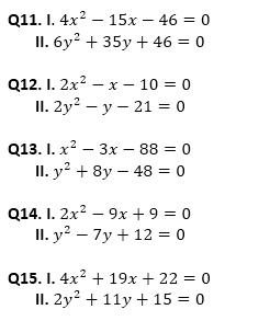 Directions (11-15): In the following questions two equations numbered (I) and (II) . You have to solve both equations and give the answer