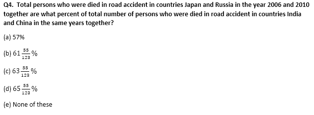 Directions (1-5): The following table shows the total number of persons who died in road accident in five different countries in six different years. Study the table carefully to answer the following questions.