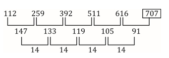 Q7. 112, 259, 392, 511, 616, ?