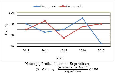 Direction (11-15): The line graph given below shows profit percentage of two companies A and B in five years. Study the data carefully and answer the following questions: