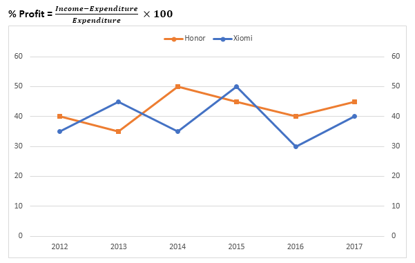 Percentage of profit earned by two companies Xiomi and Honor over the given years