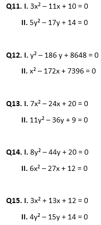 Directions (11-15): In each of these questions, two equations (I) and (II) are given. You have to solve both the equations and give answer