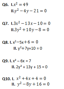 Directions (Q.6-10): Two equations I and II are given below in each question. You have to solve these equations and give answer.