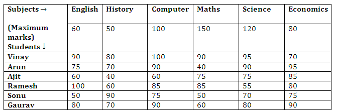 Q15. The marks obtained by Vinay in Computer is approximately how much percentage more or less than that obtained by Arun in Science?
