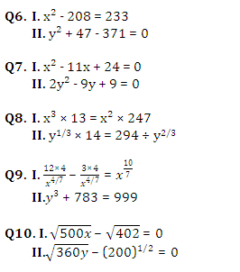 Directions (6-10): In these questions, two equations numbered I and II are given. You have to solve both the equations and give answer